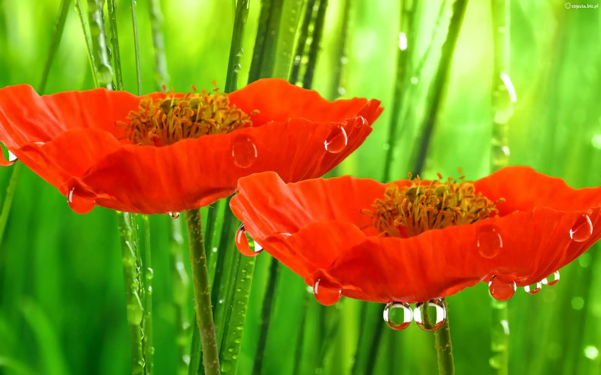 Zdjęcie Maki, Trawa, Krople