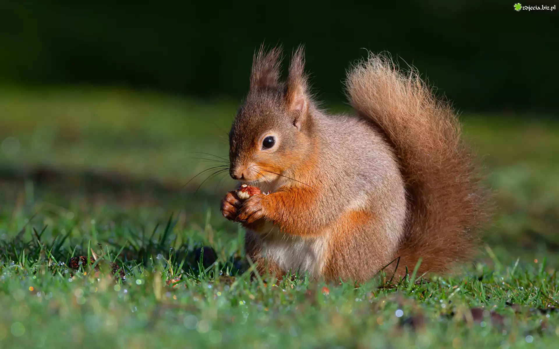 Zdjęcie Ruda, Wiewiórka, Orzech, Trawa