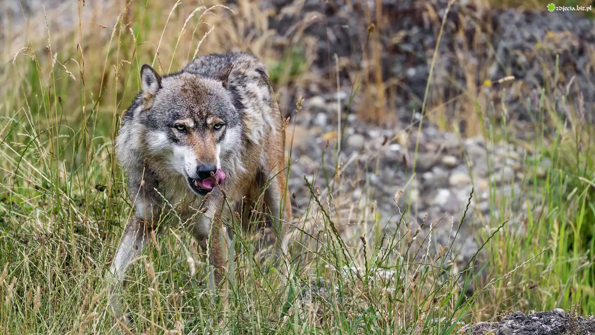 Zdjęcie Wilk, Wystający, Język, Trawa