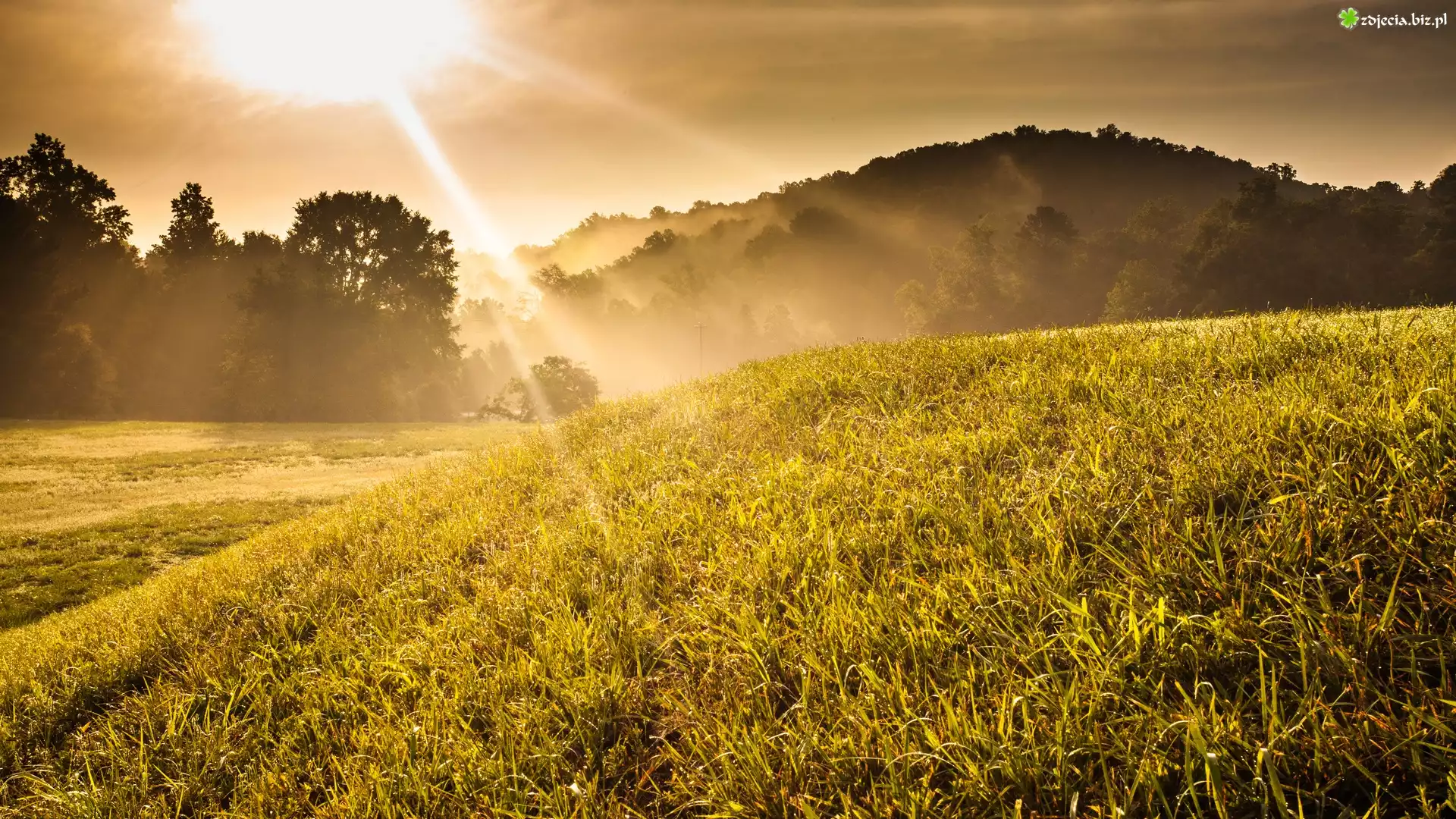 Zdjęcie Trawa, Drzewa, Zachód, Słońca