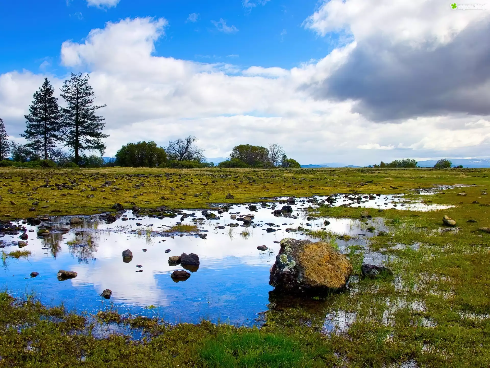 Zdjęcie Woda, Trawy, Chmury