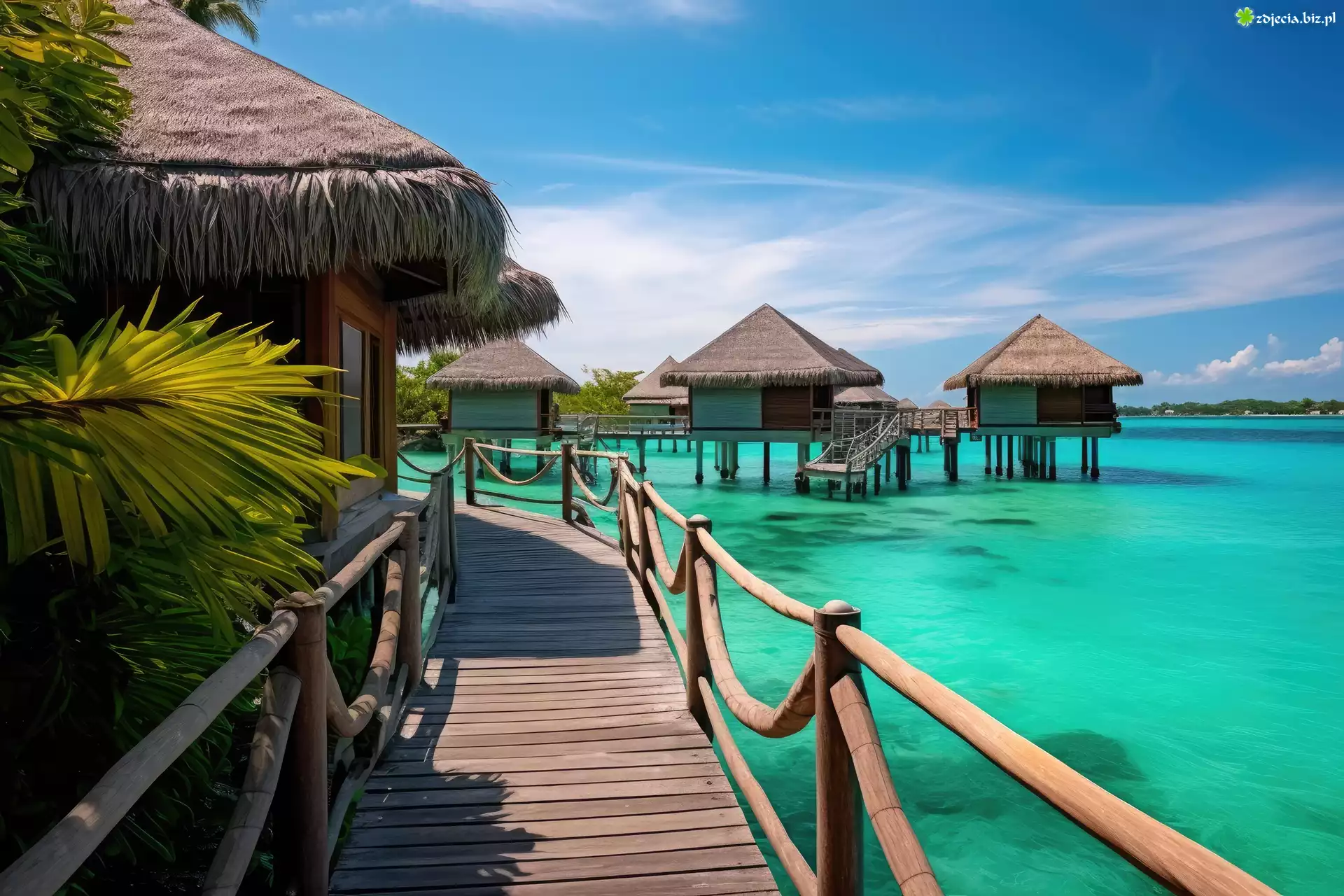 Zdjęcie Pomost, Domy, Bungalowy, Tropiki, Morze, Grafika