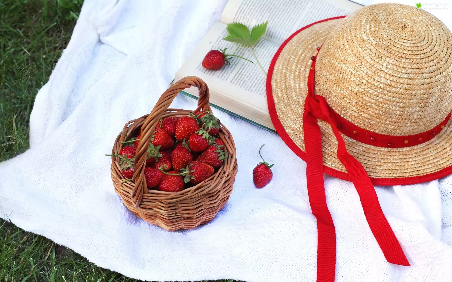 Zdjęcie Truskawki, Łąka, Kapelusz, Książka