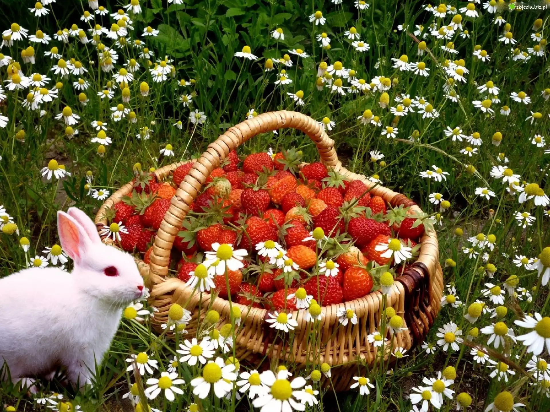 Zdjęcie Królik, Truskawki, Rumianek pospolity