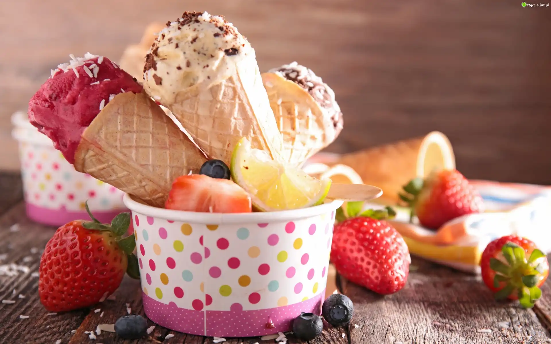 Zdjęcie Lody, Truskawki, Cytryna