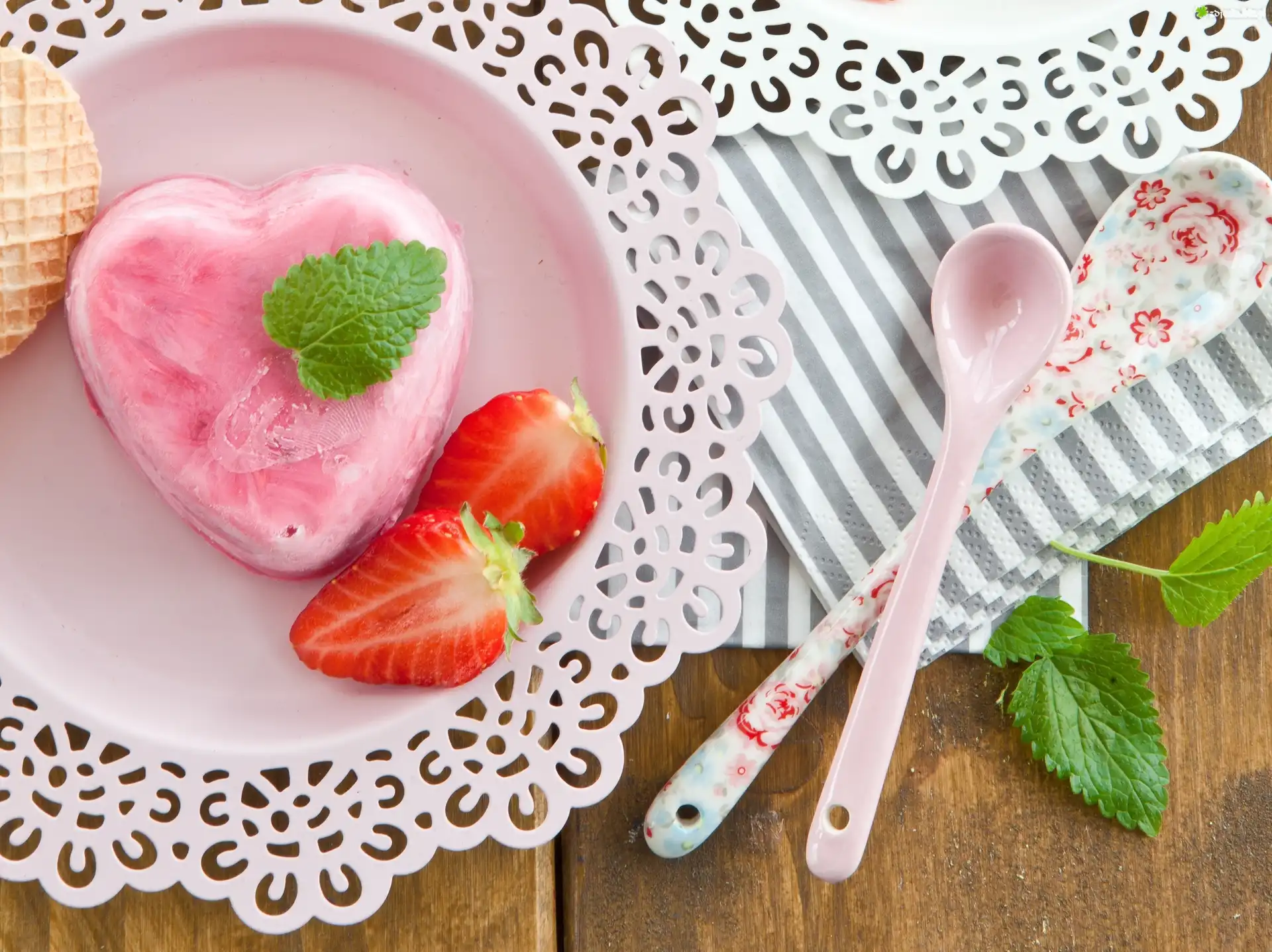 Zdjęcie Lody, Truskawki, Łyżeczki