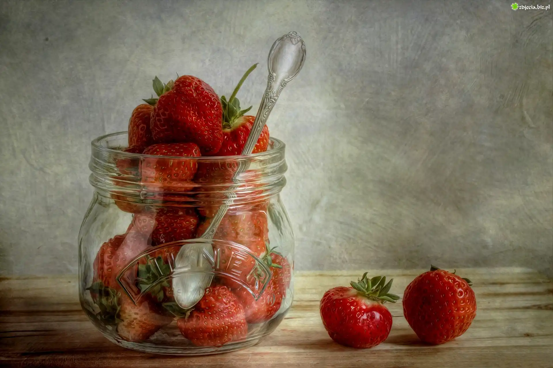 Zdjęcie Truskawki, Słoik, Łyżeczka, Art