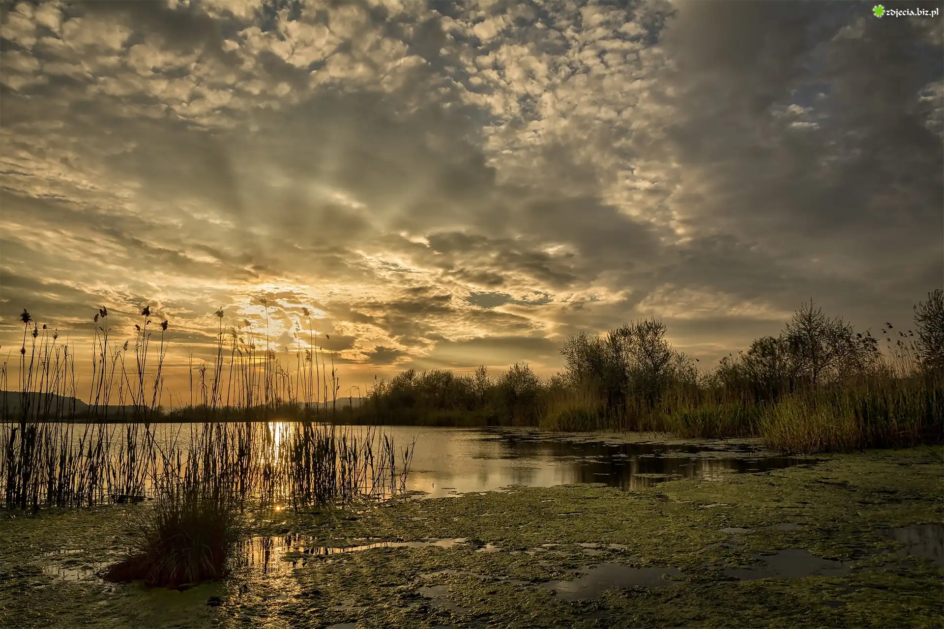Zdjęcie, Jezioro, Trzciny, Chmury