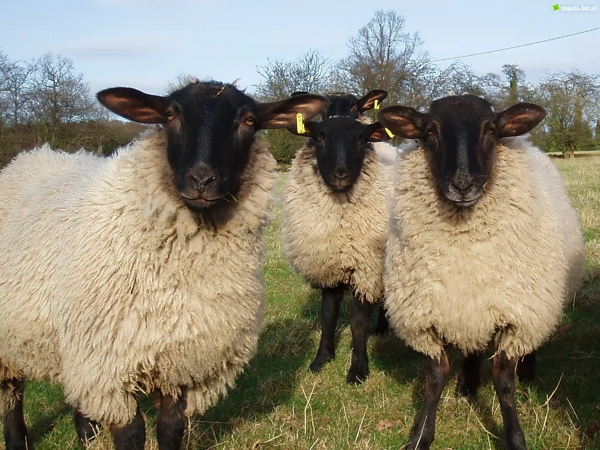 Zdjęcie Trzy, Owce, Łąka, Drzewa