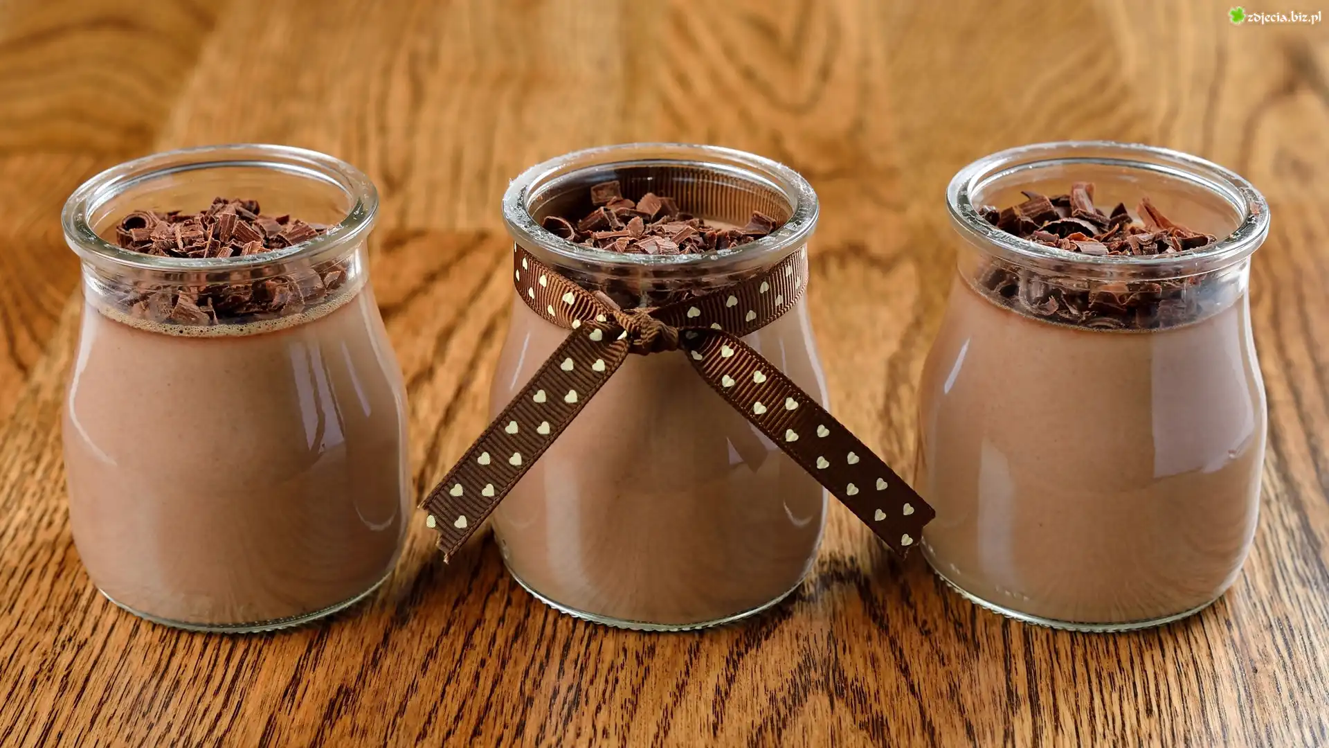 Zdjęcie Trzy, Szklane, Pojemniki, Czekolada, Deser