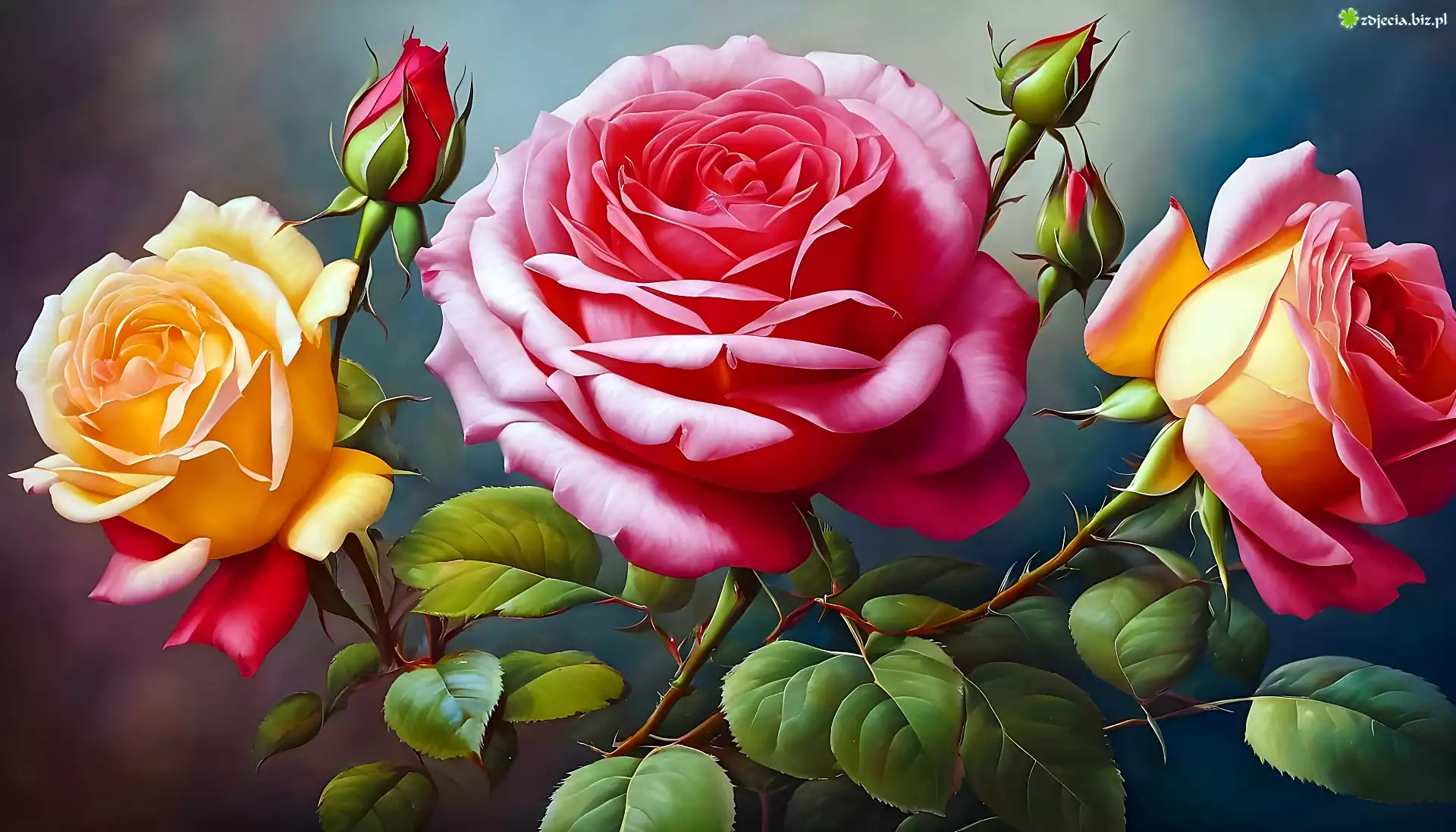 Zdjęcie Róże, Trzy, Kwiaty, Pąki, Grafika