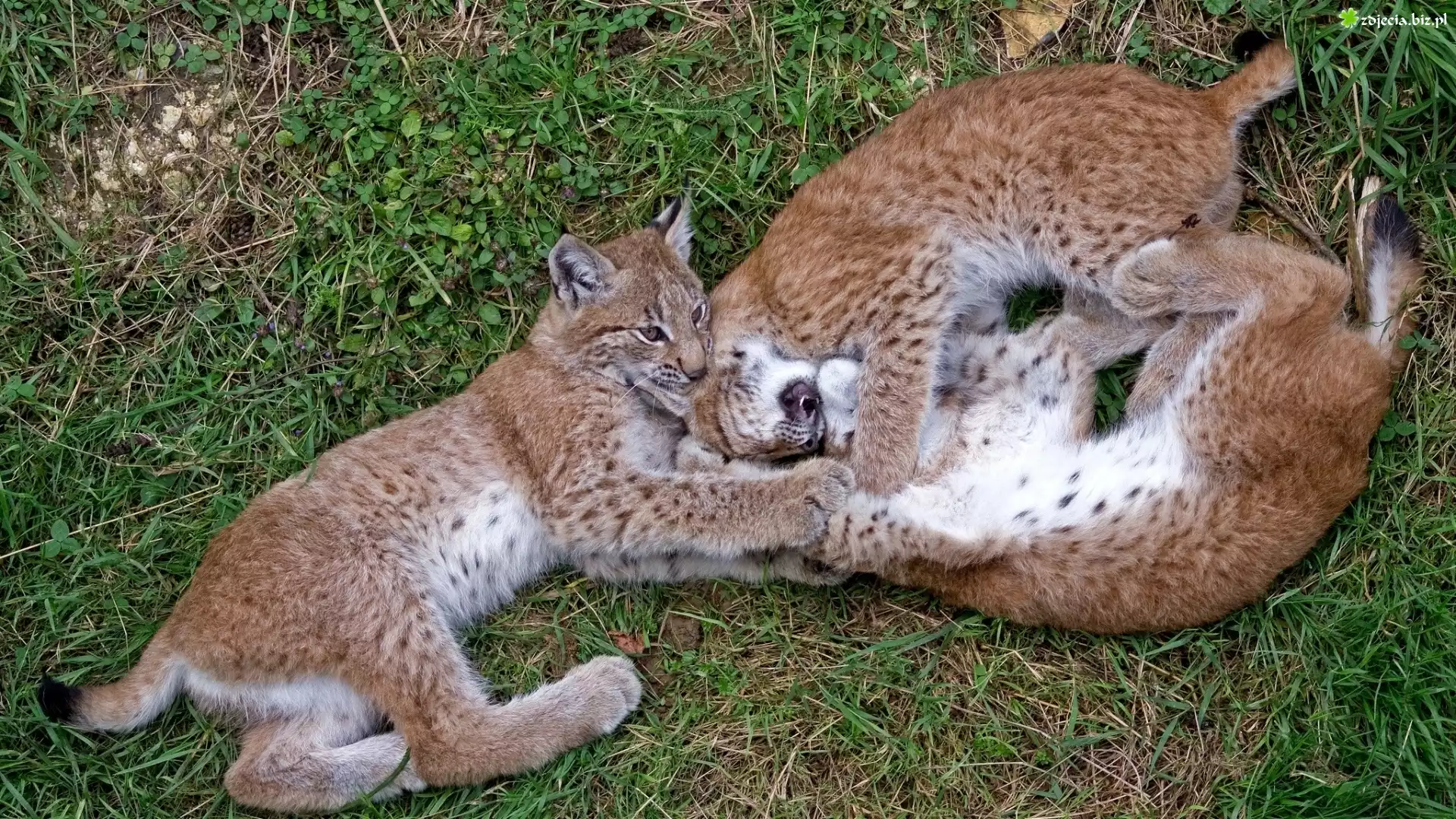Zdjęcie Trzy, Młode, Rysie, Trawa