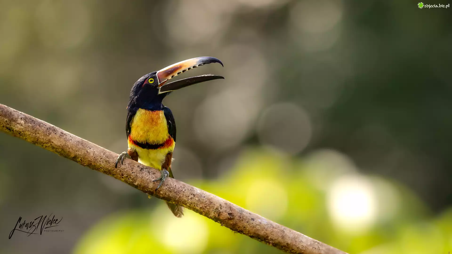 Zdjęcie Ptak, Tukan, Arasari obrożny, Gałąź