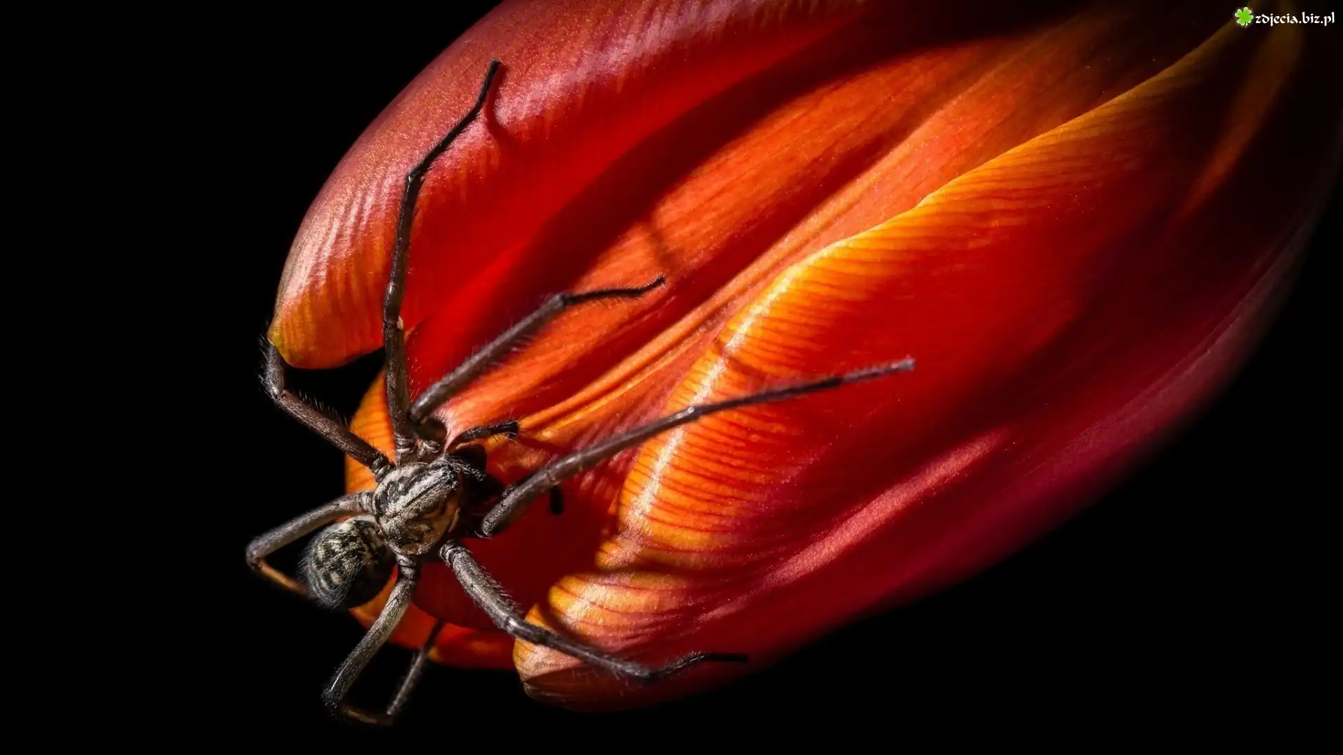 Zdjęcie, Czerwony, Tulipan, Pająk