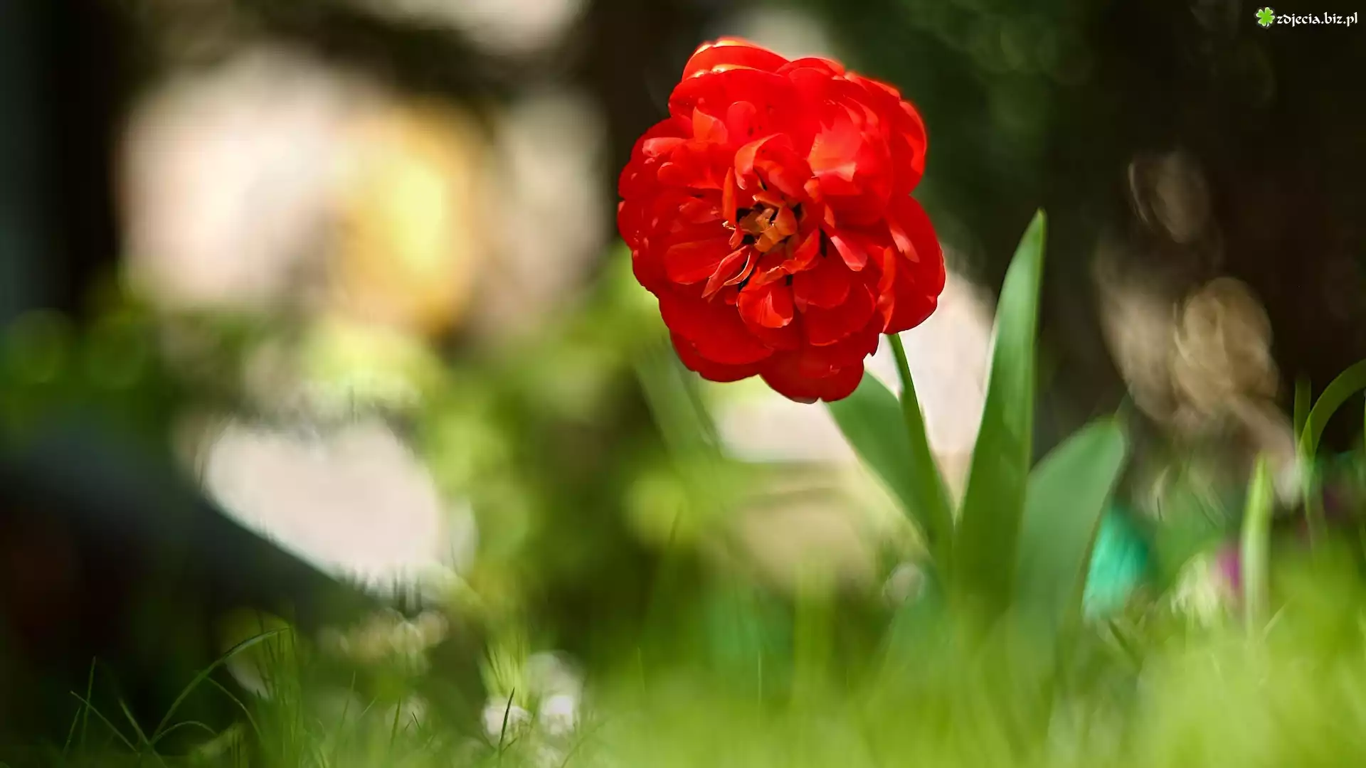 Zdjęcie Kwiat, Tulipan, Czerwony, Trawa, Rozmycie
