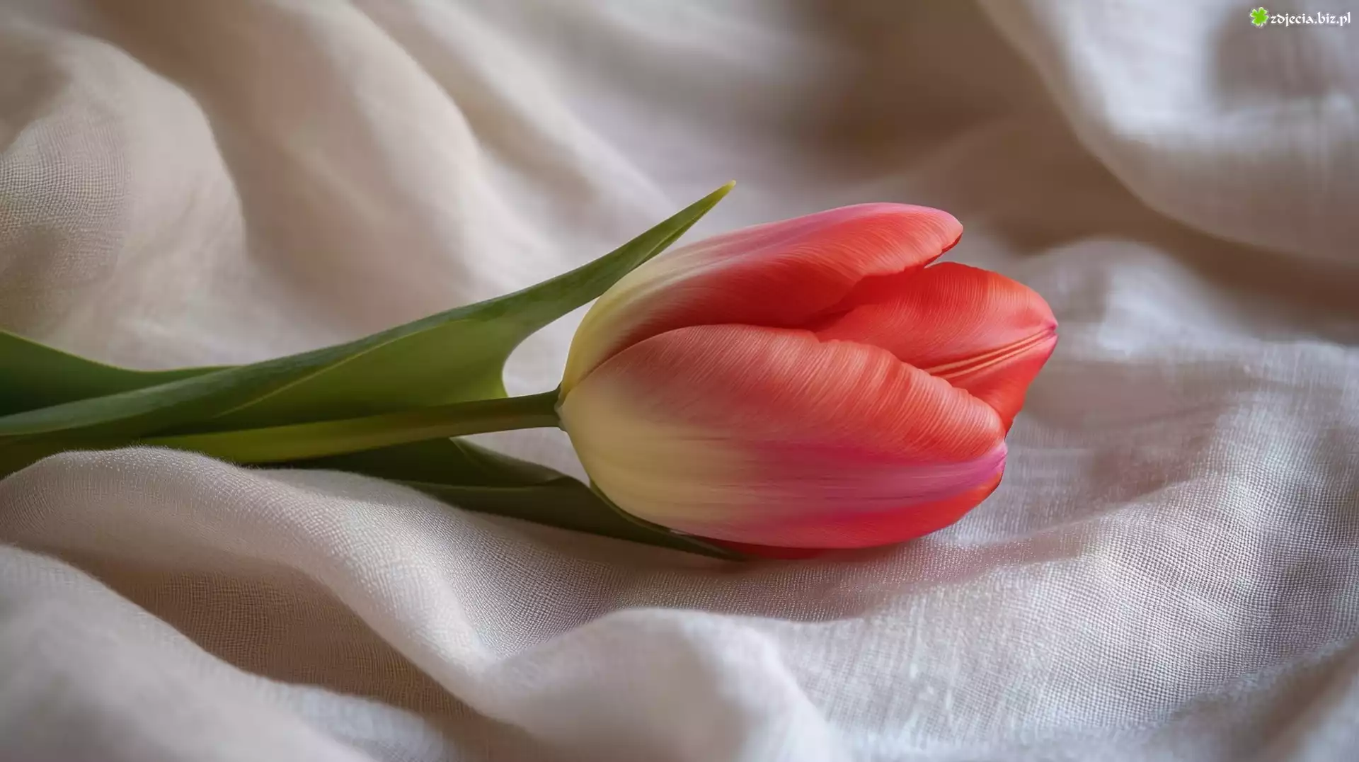 Zdjęcie, Jasnoczerwony, Tulipan, Materiał, Biały, AI