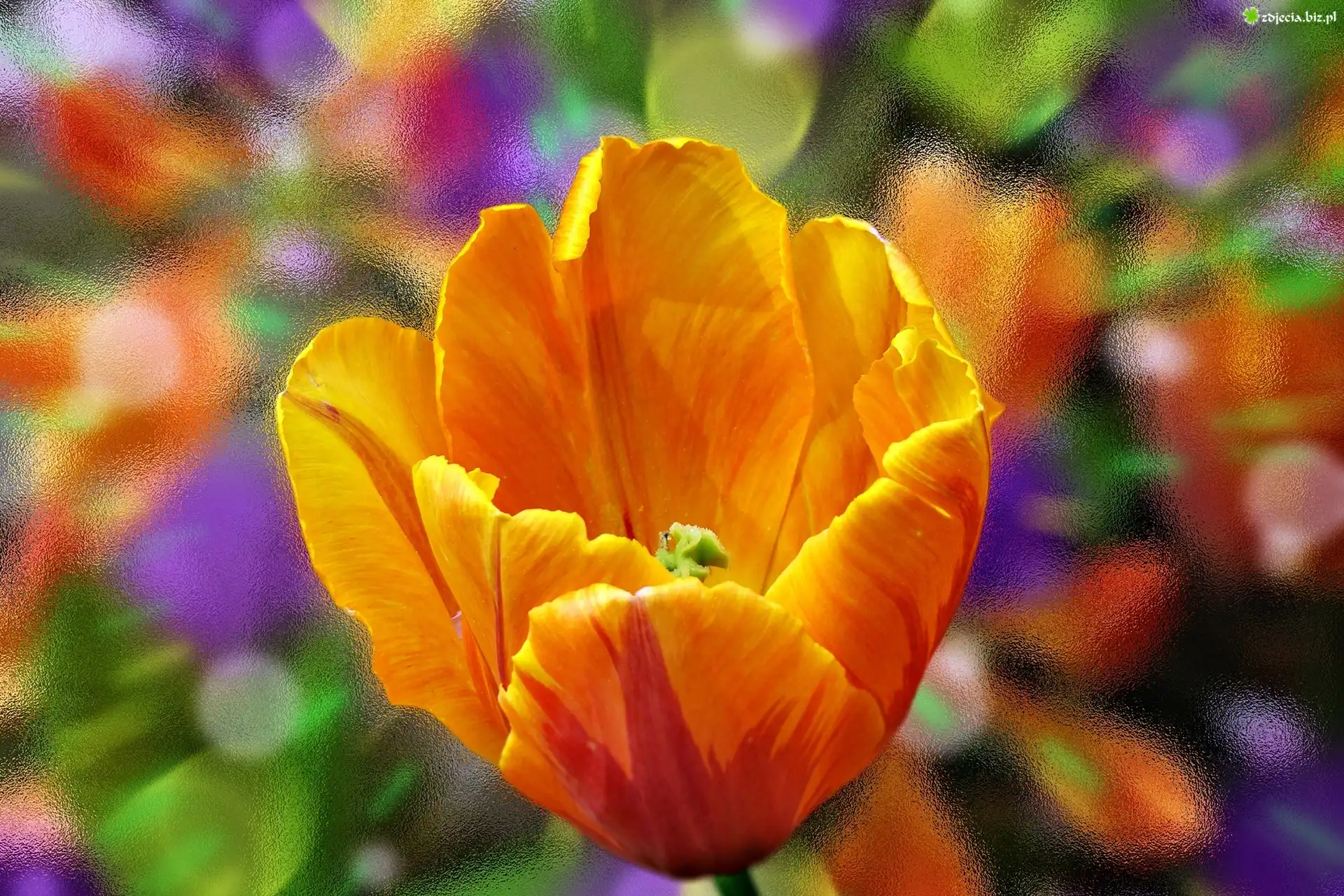 Zdjęcie Tulipan, Pomarańczowy, Kwiat, Szyba, Makro