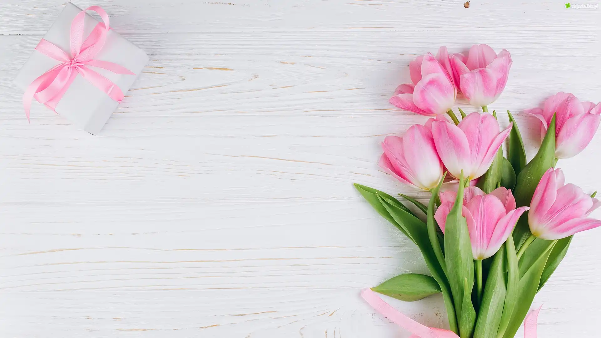 Zdjęcie Tulipany, Prezent, Białe, Deski