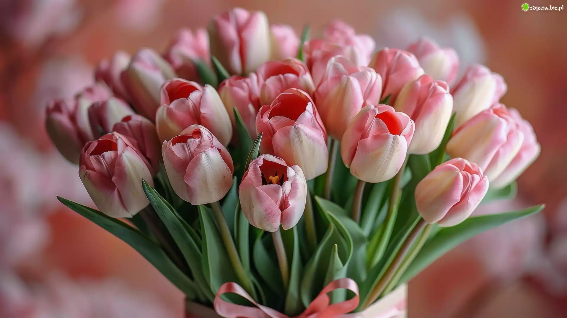 Zdjęcie Bukiet, Biało-różowe, Tulipany