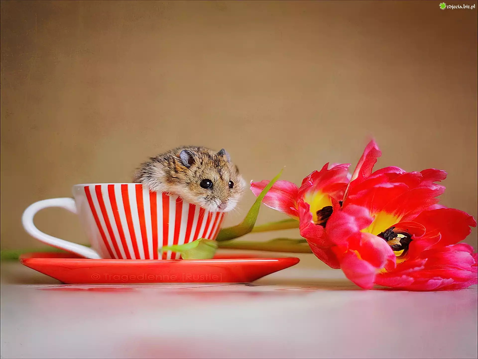 Zdjęcie Chomik, Tulipany, Filiżanka
