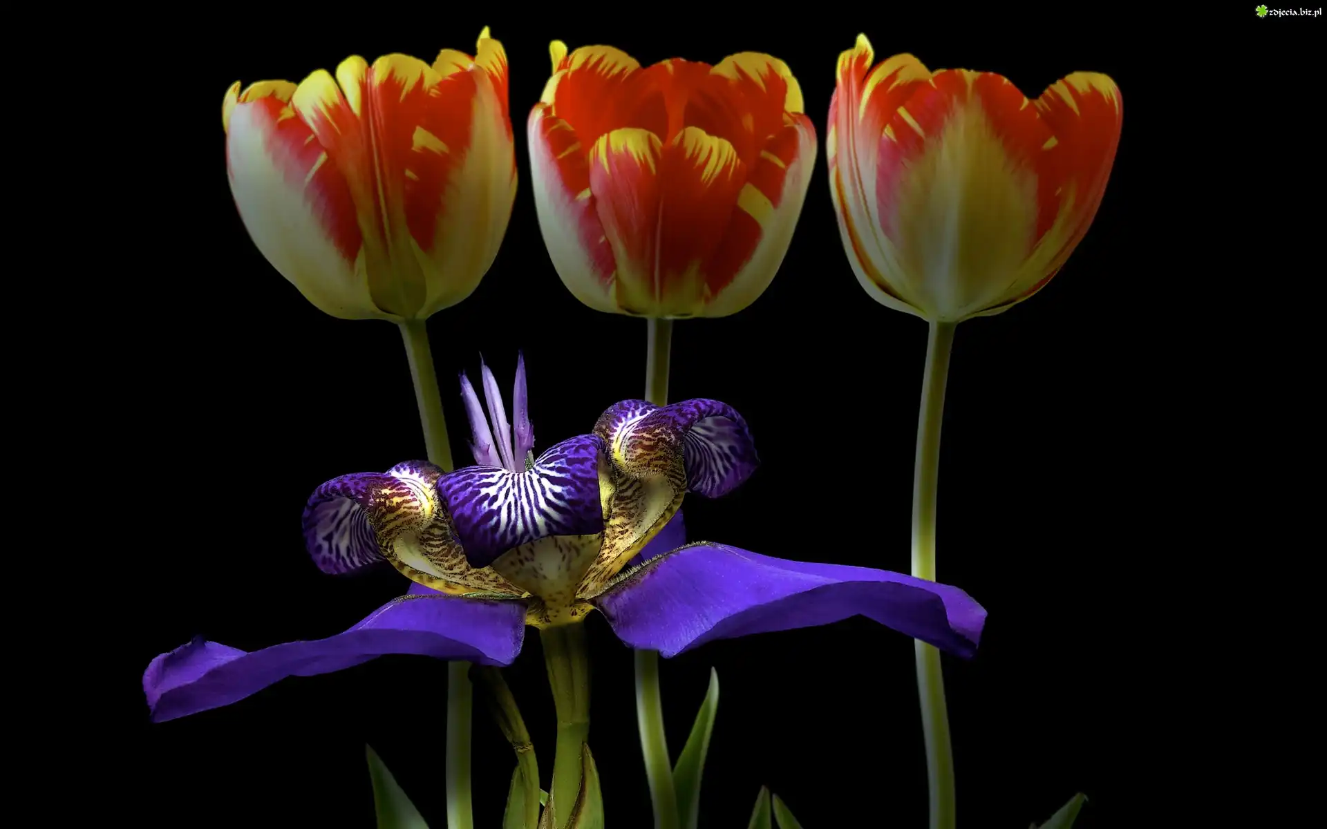 Zdjęcie Tulipany, Irys, Bukiet, Czarne, Tło