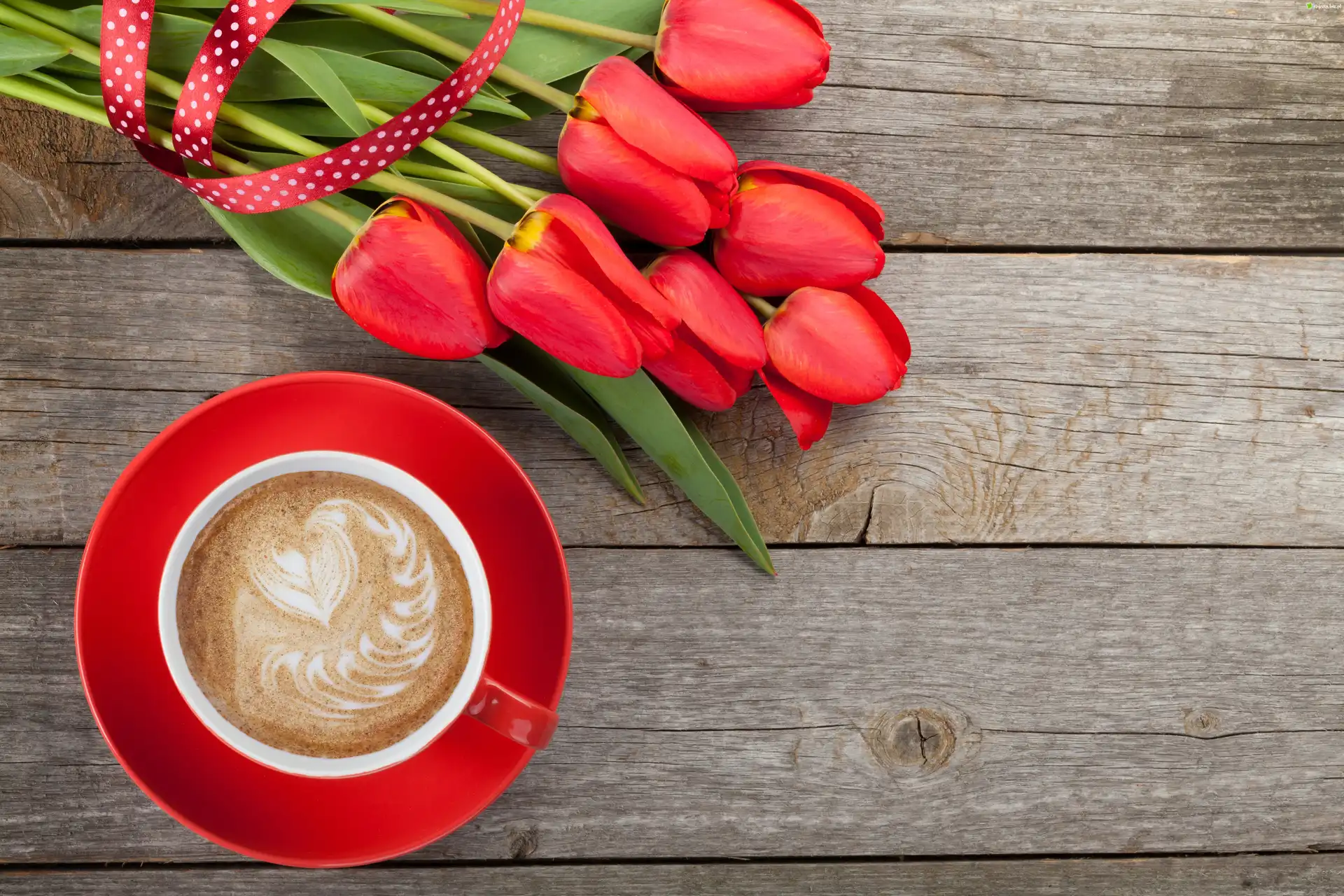 Zdjęcie, Tulipany, Kawa, Czerwona, Filiżanka