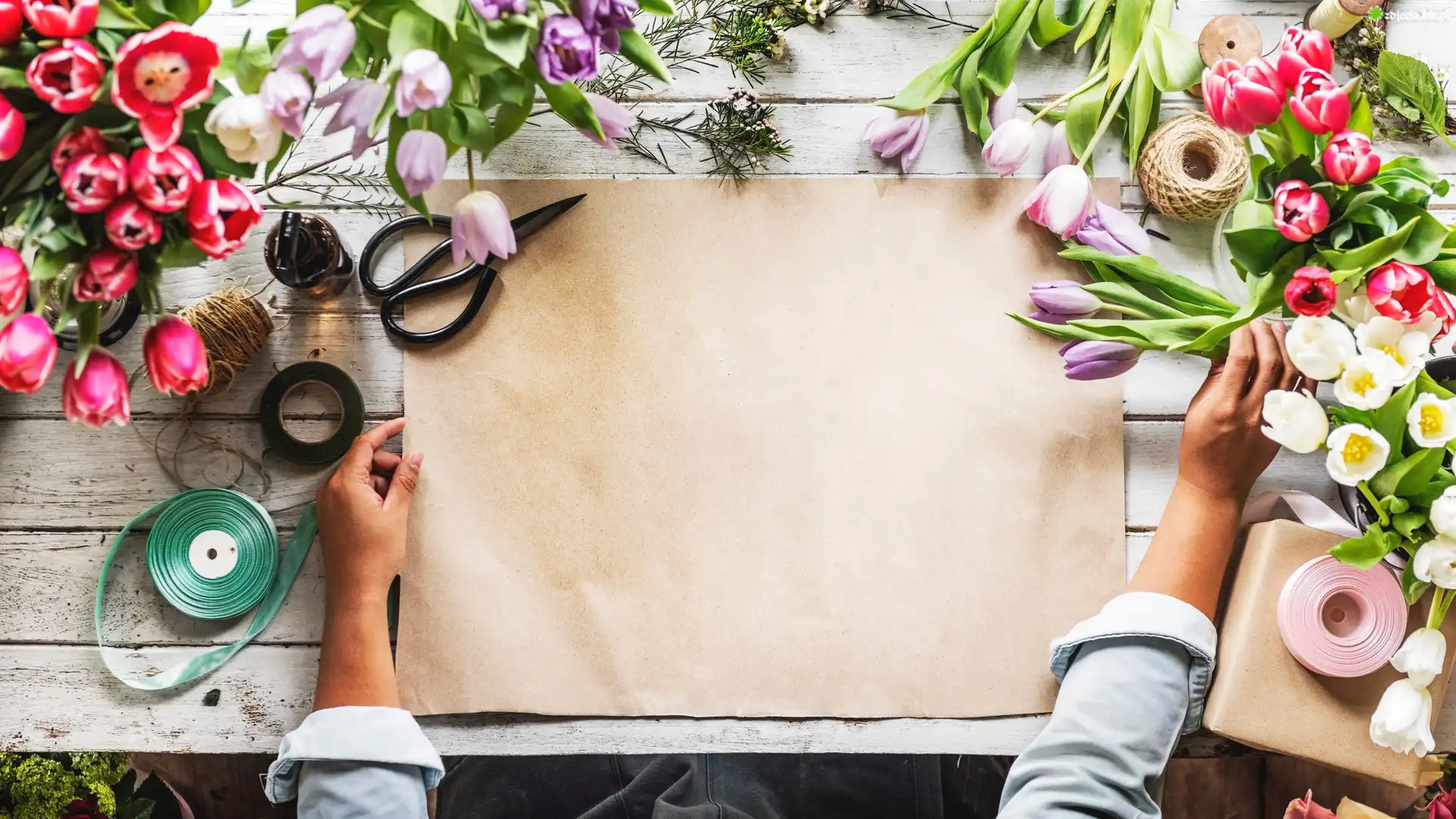 Zdjęcie Tulipany, Stół, Dłonie, Kompozycja