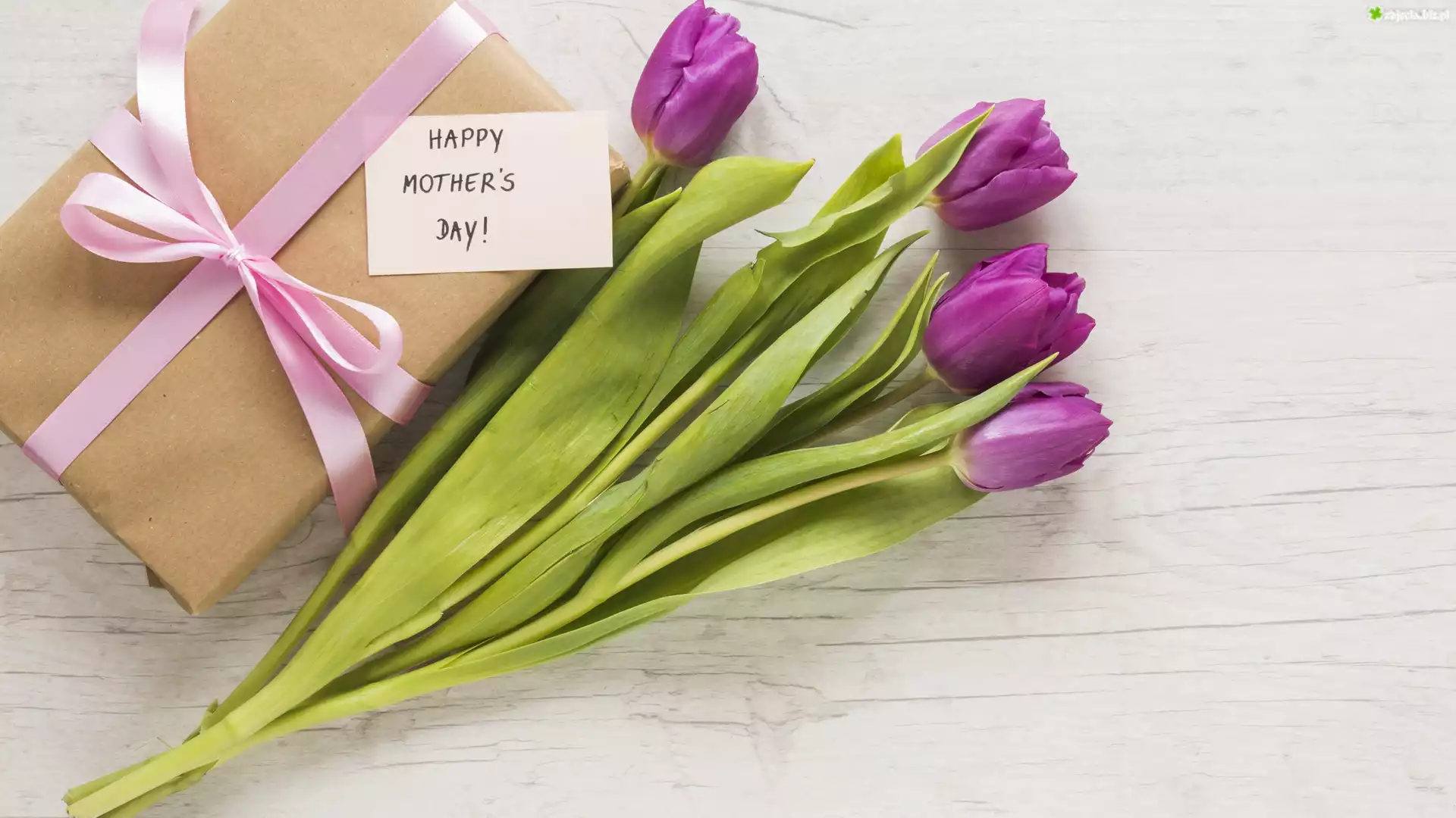 Zdjęcie Tulipany, Prezent, Liścik, Dzień Matki