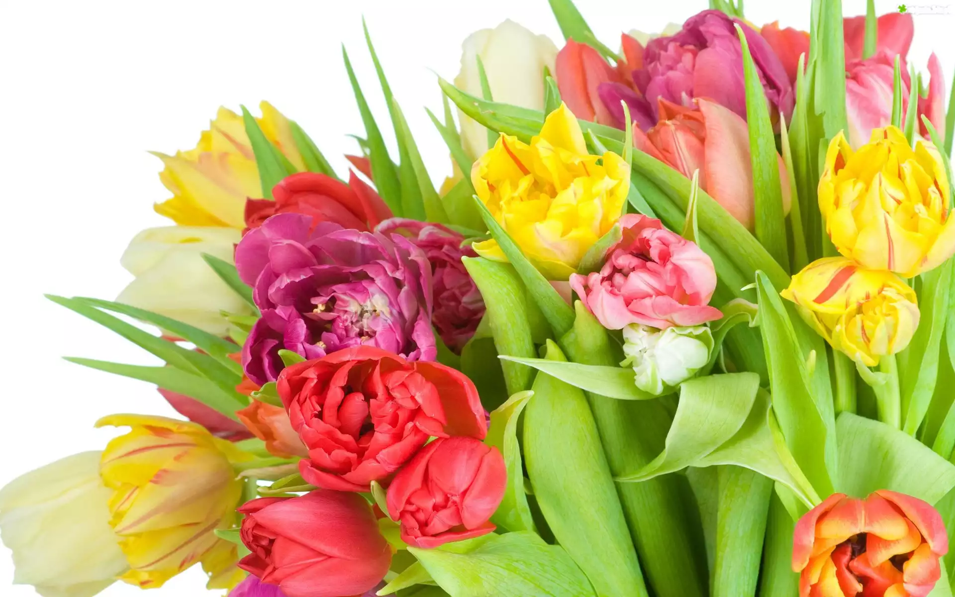 Zdjęcie, Kolorowe, Tulipany, Liście