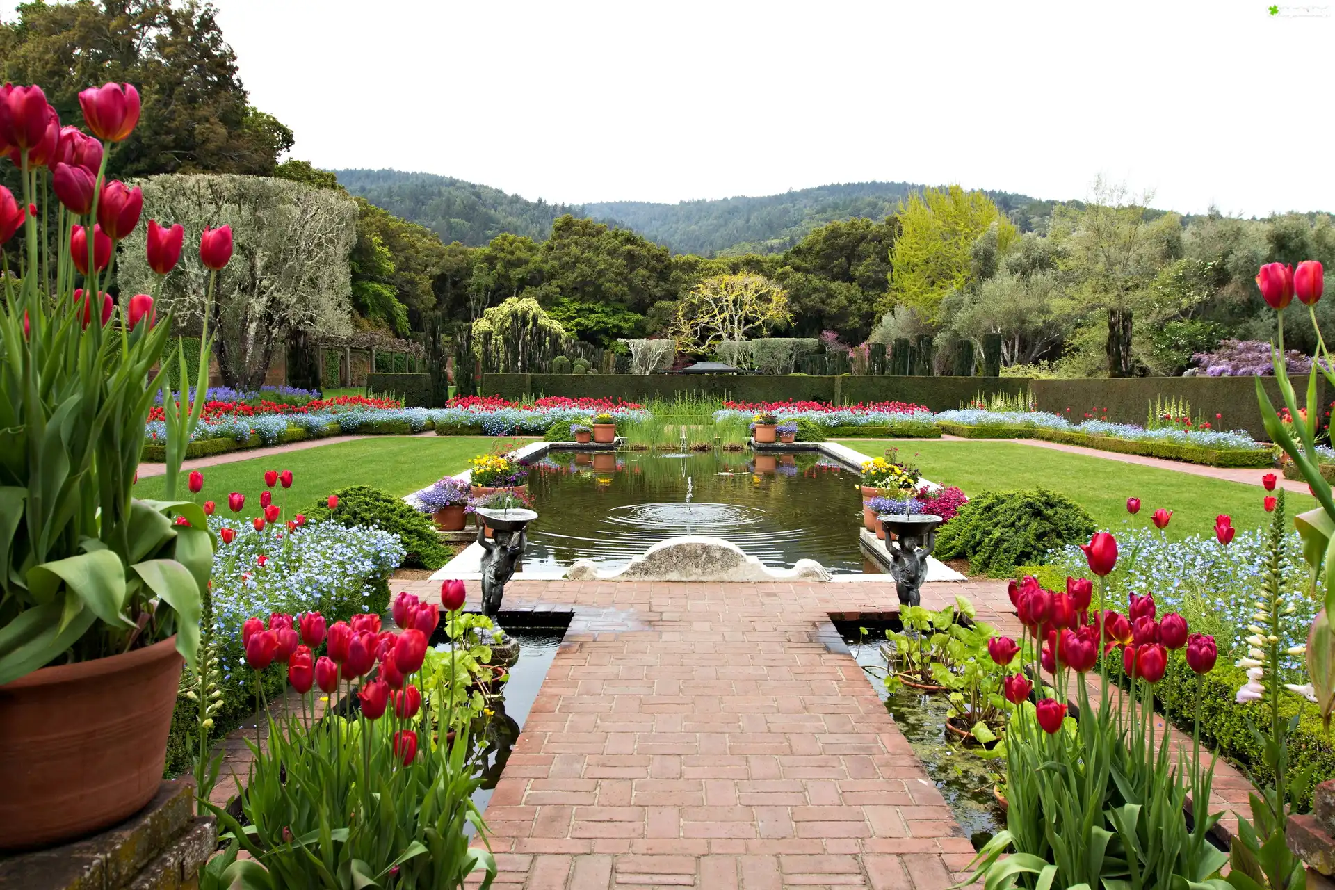 Zdjęcie Ogród, Tulipany, Sadzawka
