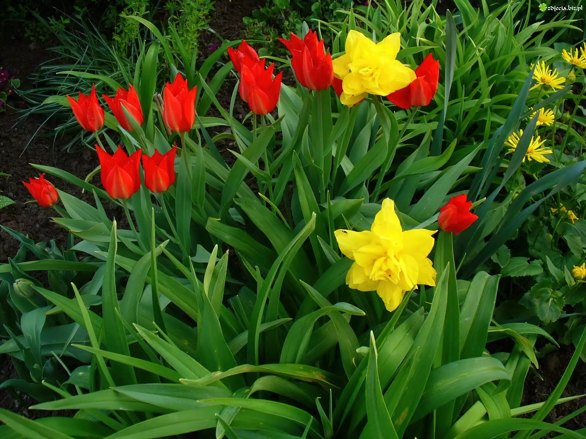Zdjęcie, Żonkile, Tulipany, Ogród