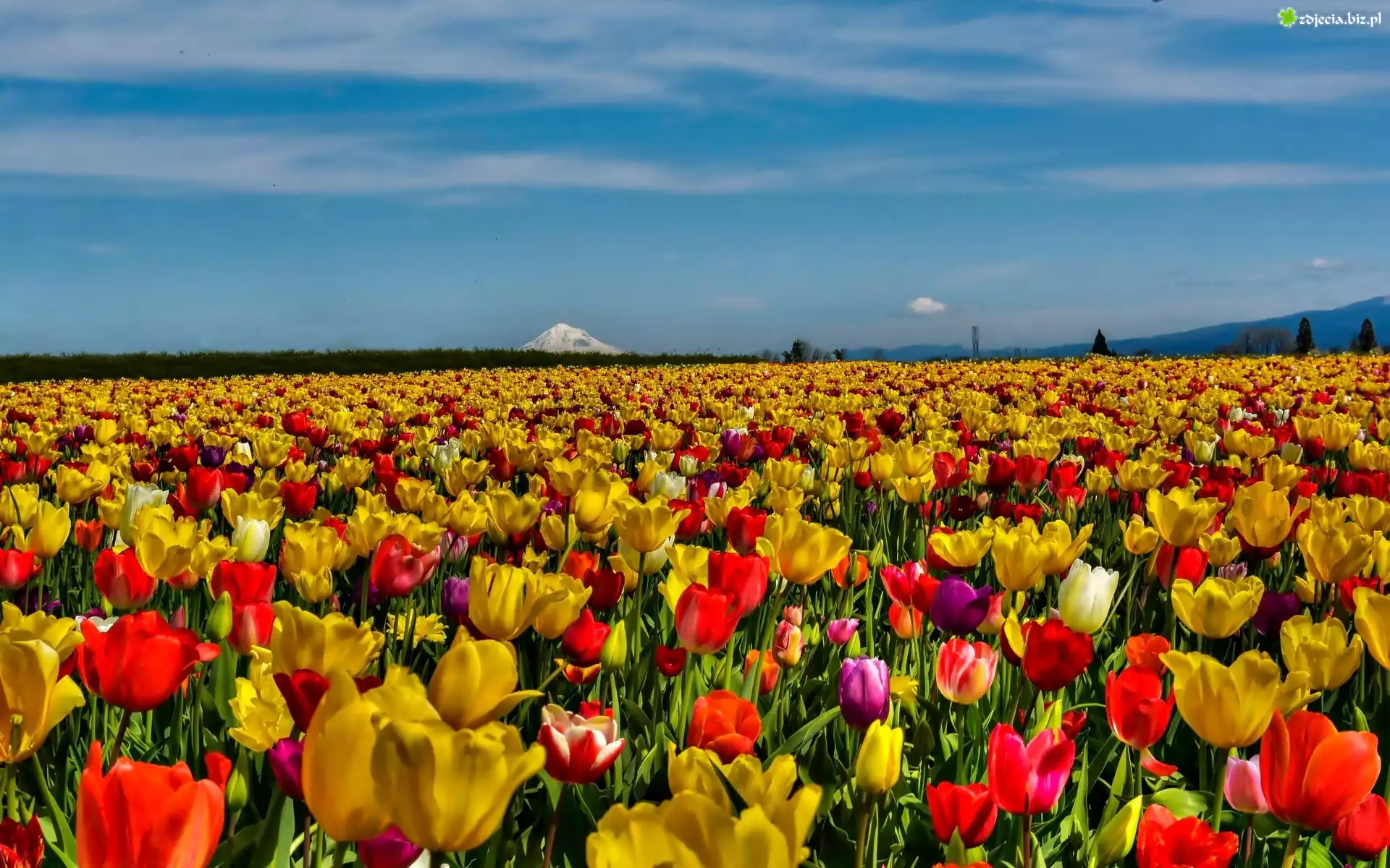 Zdjęcie Pole, Tulipany, Niebo