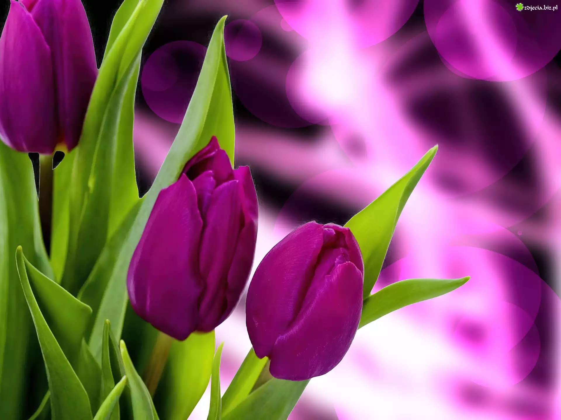 Zdjęcie, Purpurowe, Tulipany, Liście