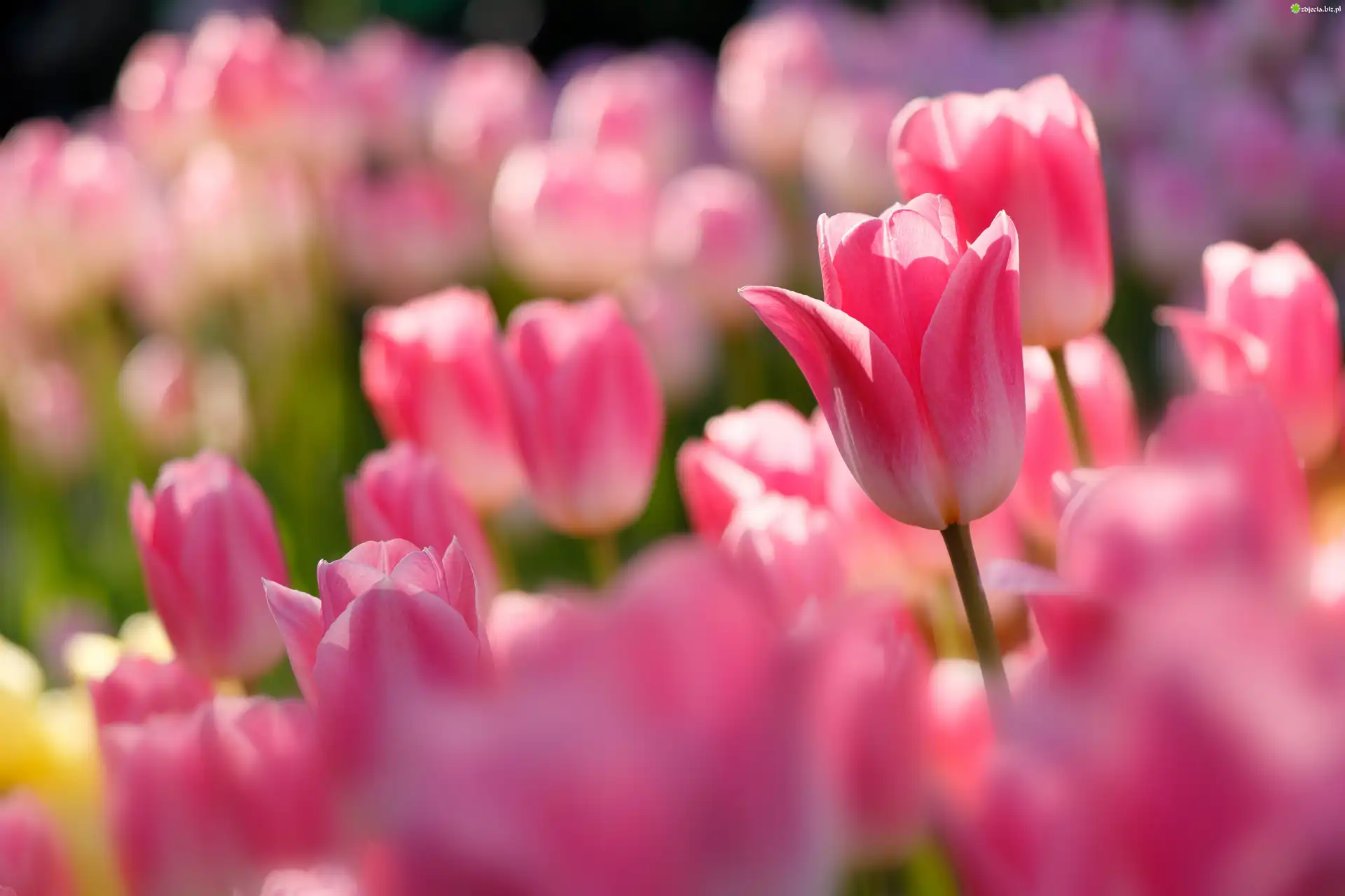 Zdjęcie, Różowe, Tulipany, Zbliżenie