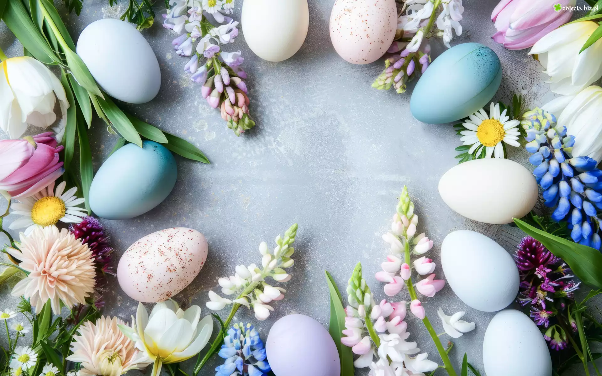 Zdjęcie Kolorowe, Pisanki, Kwiaty, Tulipany, Łubin, Wielkanoc