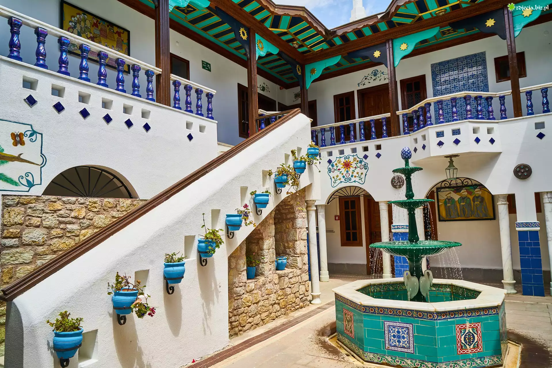 Zdjęcie, Hotel, Dziedziniec, Fontanna, Krużganki, Perili Bay Resort Hotel, Marmaris, Turcja