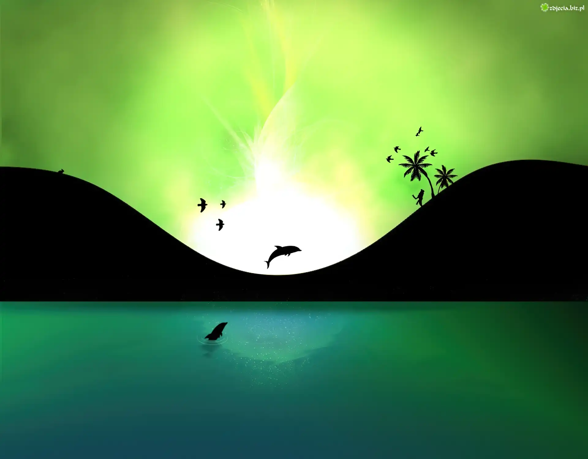 Zdjęcie Turkusowa, Woda, Delfiny, Zielone, Niebo