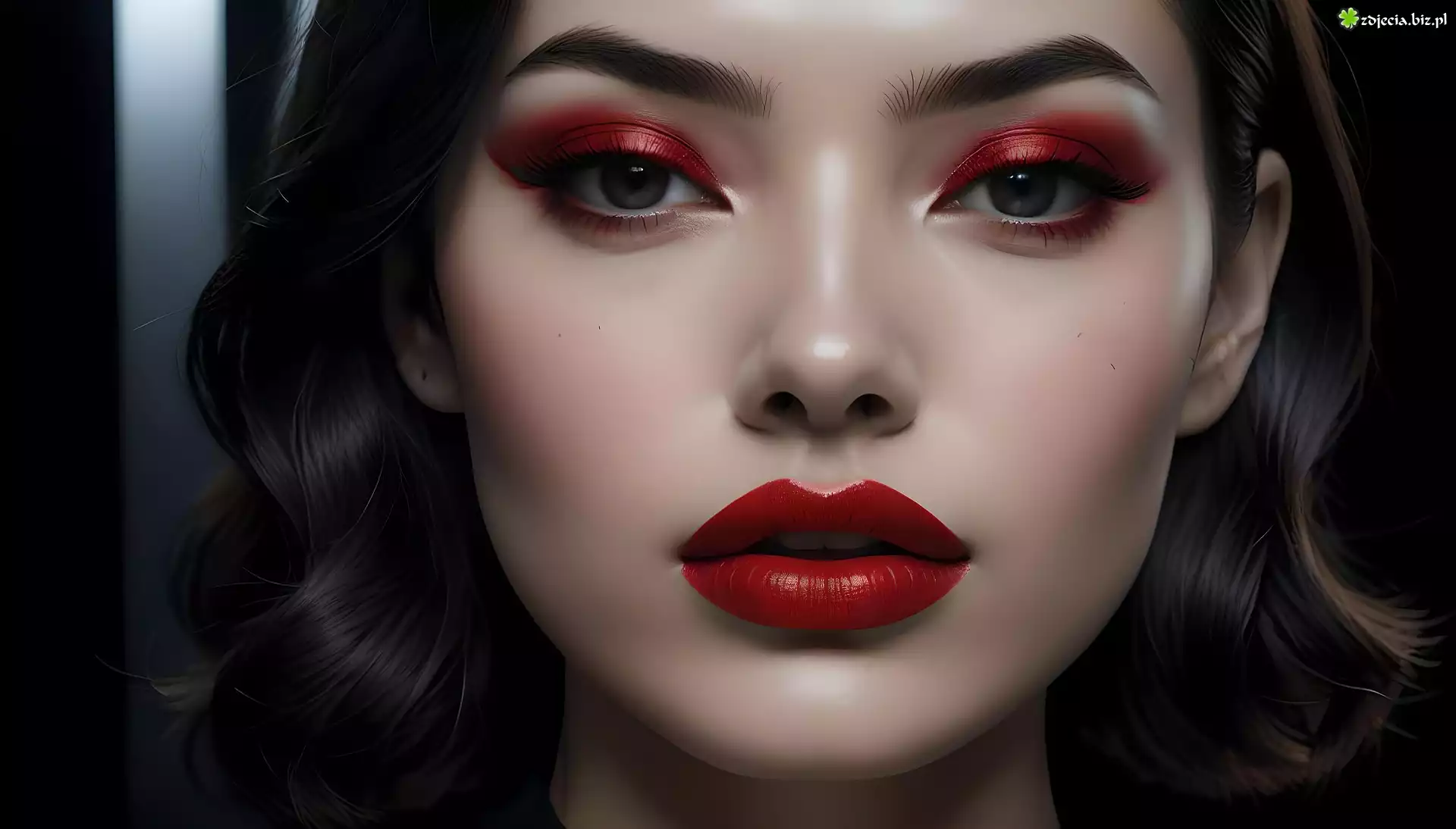 Zdjęcie Kobieta, Twarz, Czerwone, Usta, Makijaż
