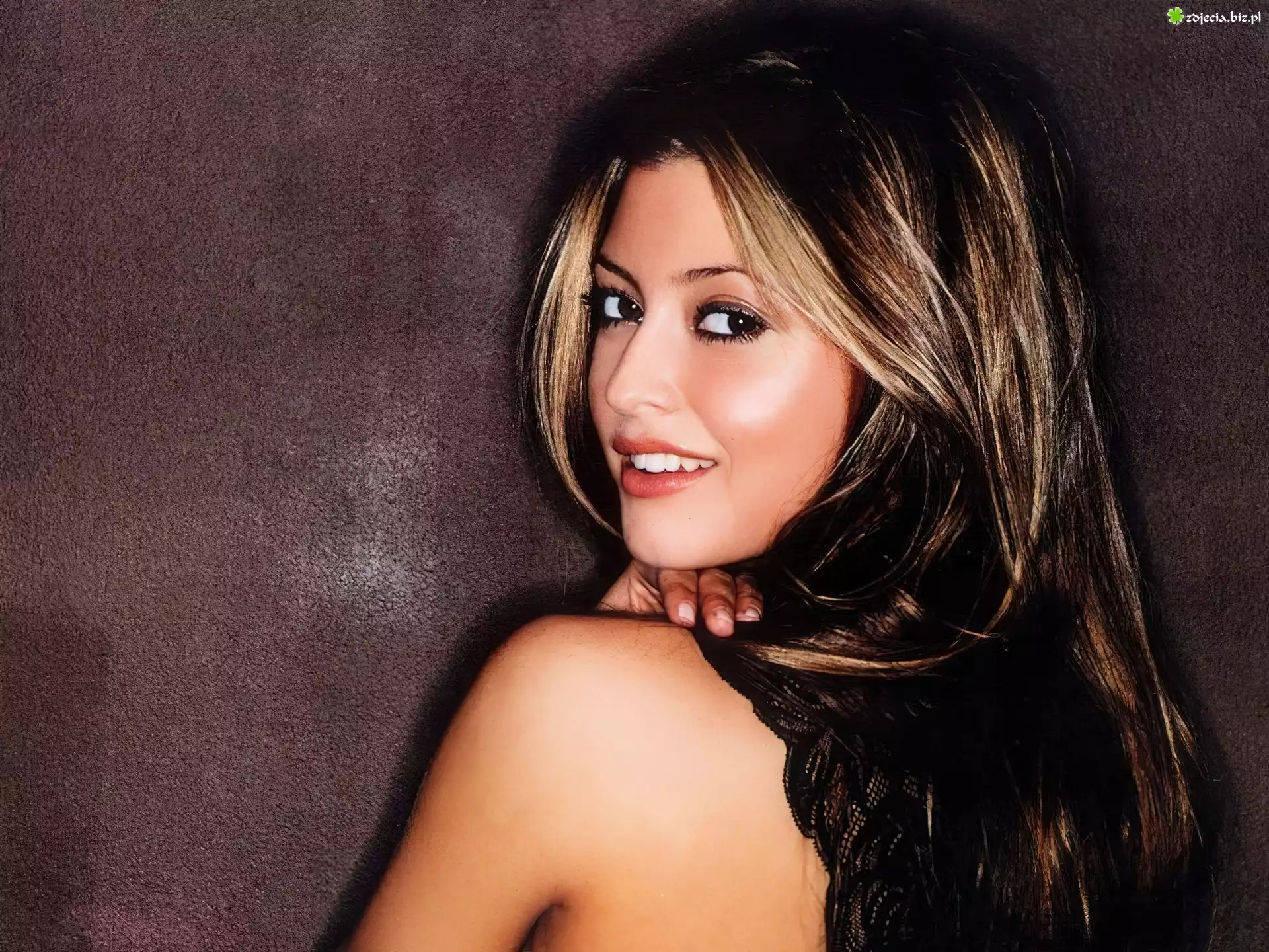 Holly Valance, kucyk, mikrofon długie, włosy, Holly Valance ładna, twarz, Holly Valance uśmiech, oczy, Holly Valance twarz, ramię, Holly Valance Holly Valance, balejaż Holly Valance, naszyjnik upięte, włosy, grzywka, Holly Valance