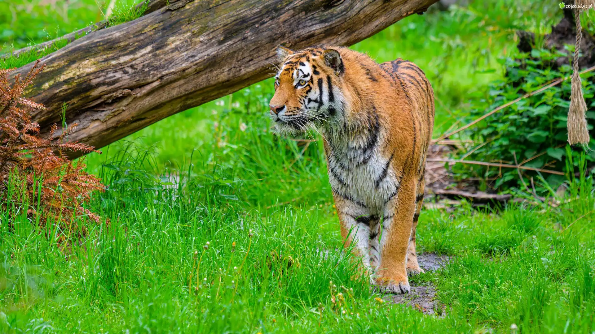 Zdjęcie, Tygrys, Trawa, Kłoda
