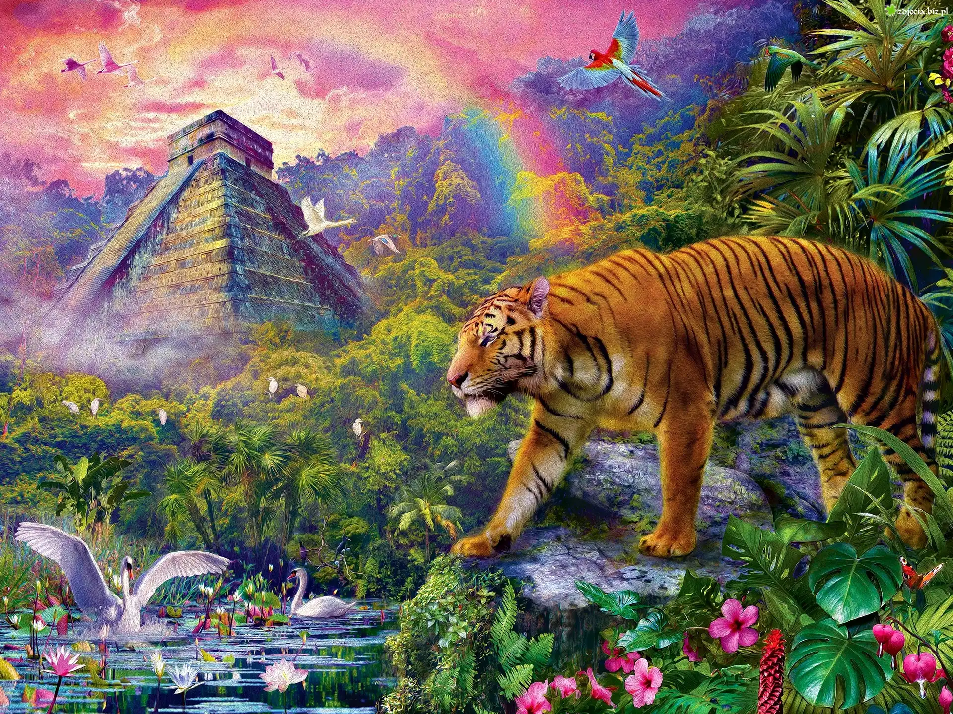 Zdjęcie Tygrys, Dżungla, Tęcza, Obraz
