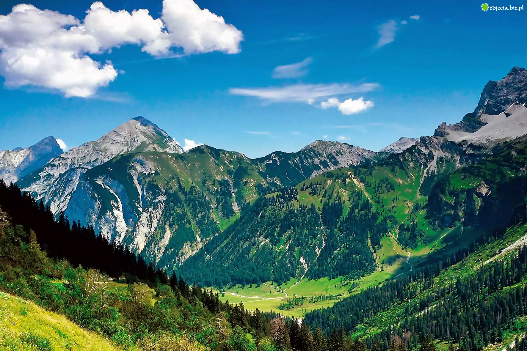 Zdjęcie Tyrol, Góry, Lasy, Łąki, Dolina