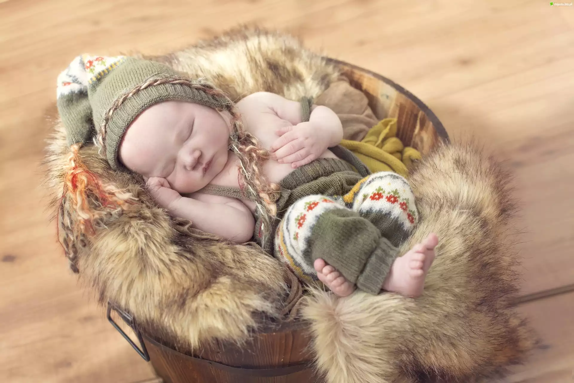 Zdjęcie Śpiące, Dziecko, Ubranko, Kosz