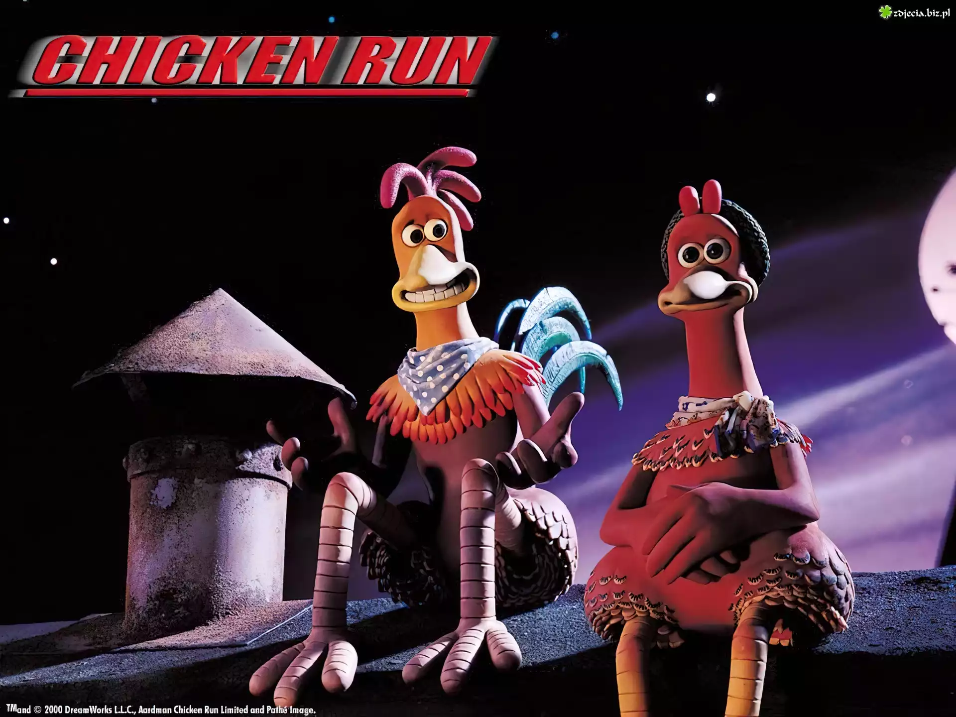 Zdjęcie Uciekajace kurczaki, Chicken Run, dach, noc