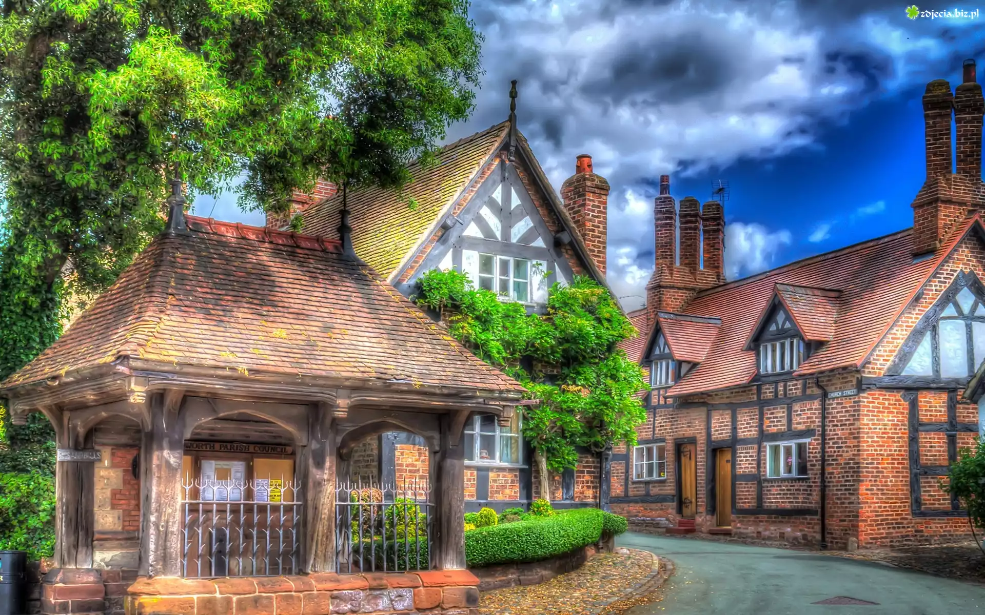Zdjęcie Ulica, Miasteczko, Domy, Drzewa, HDR