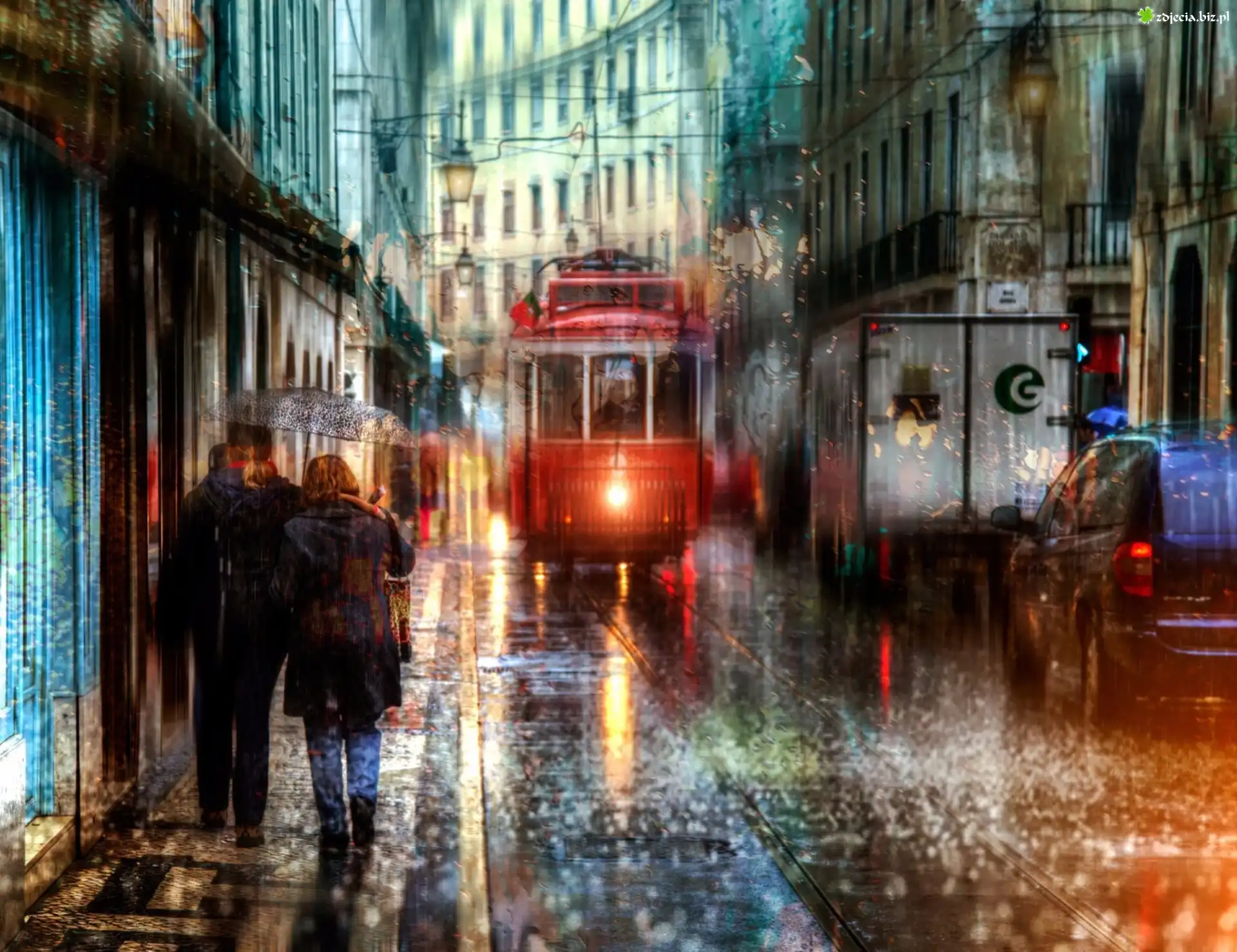 Zdjęcie Tramwaj, Ulica, Deszcz