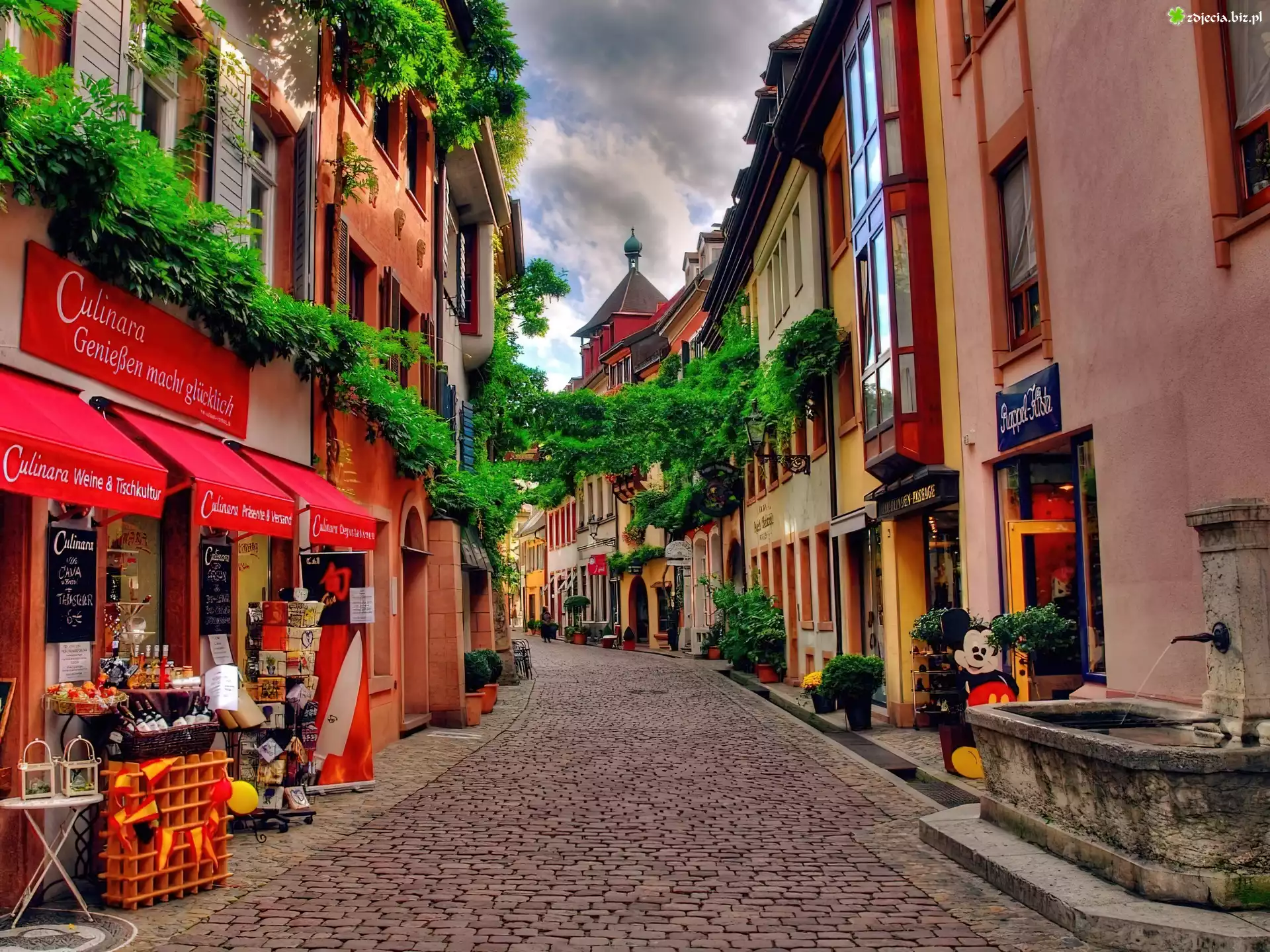 Zdjęcie Uliczka, Domy, Stragany, Stare, Miasto, Niemcy