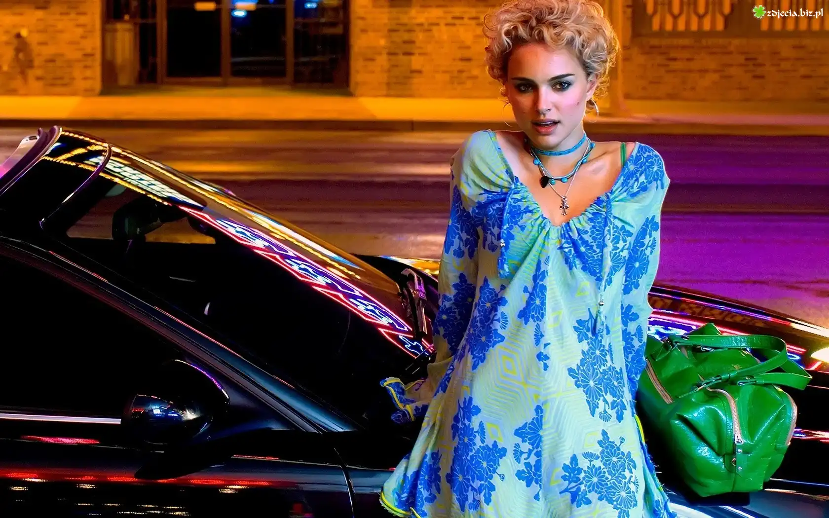 Zdjęcie Urocza, Natalie Portman, Niebieska, Sukienka