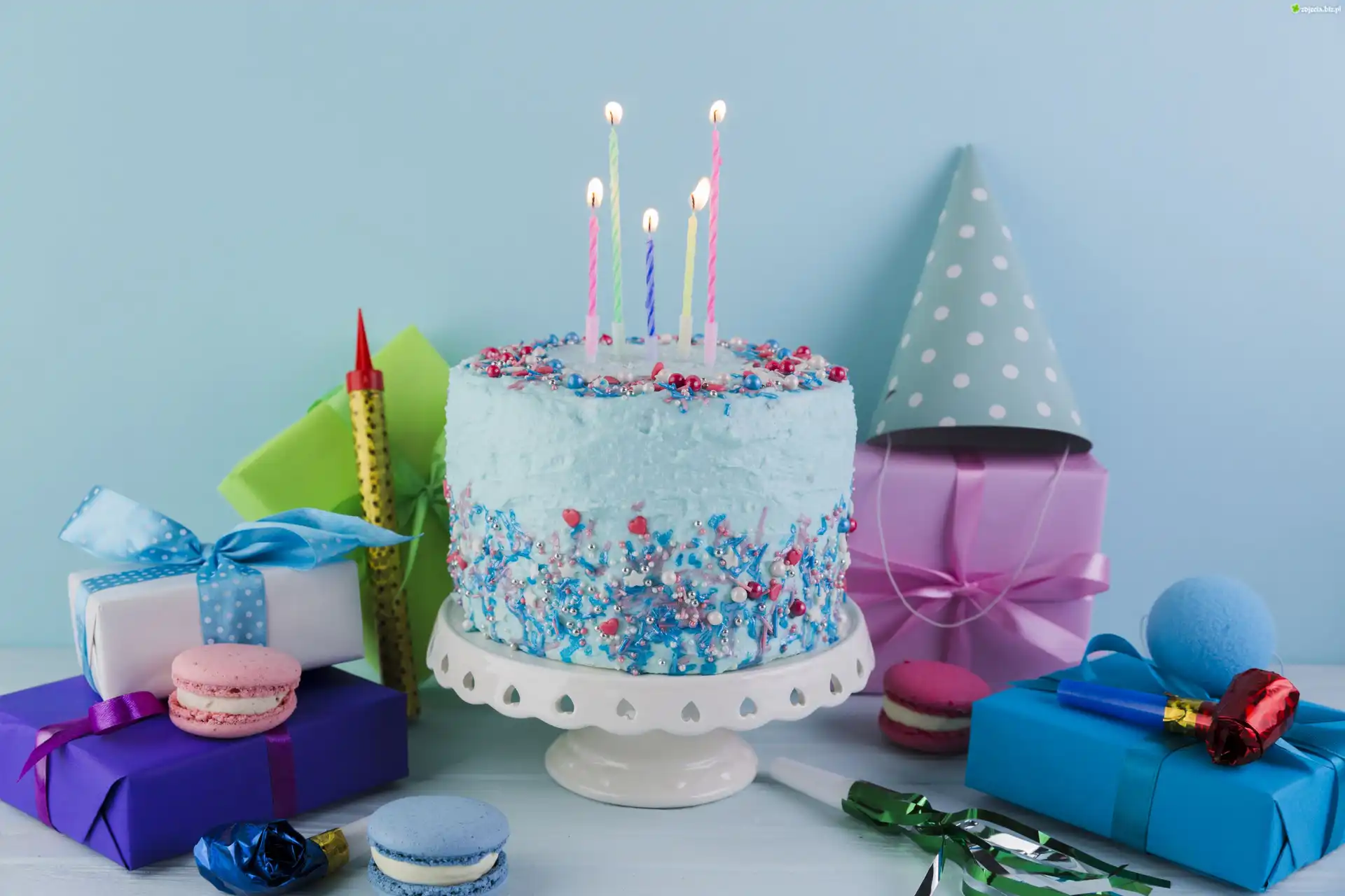 Zdjęcie Urodziny, Prezenty, Tort, Świeczki, Balony, Czapeczki