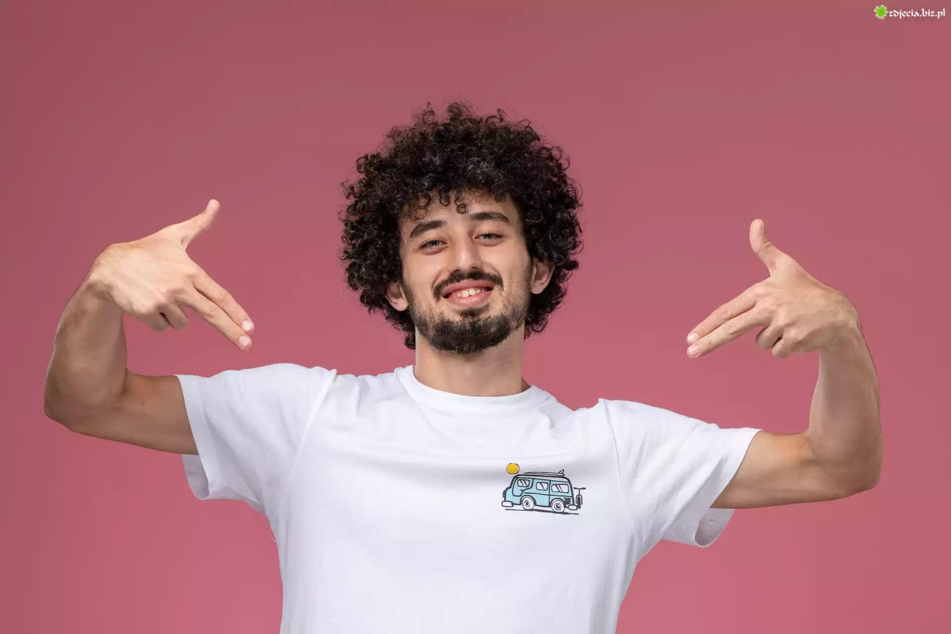 Zdjęcie Mężczyzna, Uśmiech, Biała, Koszulka, Ręce